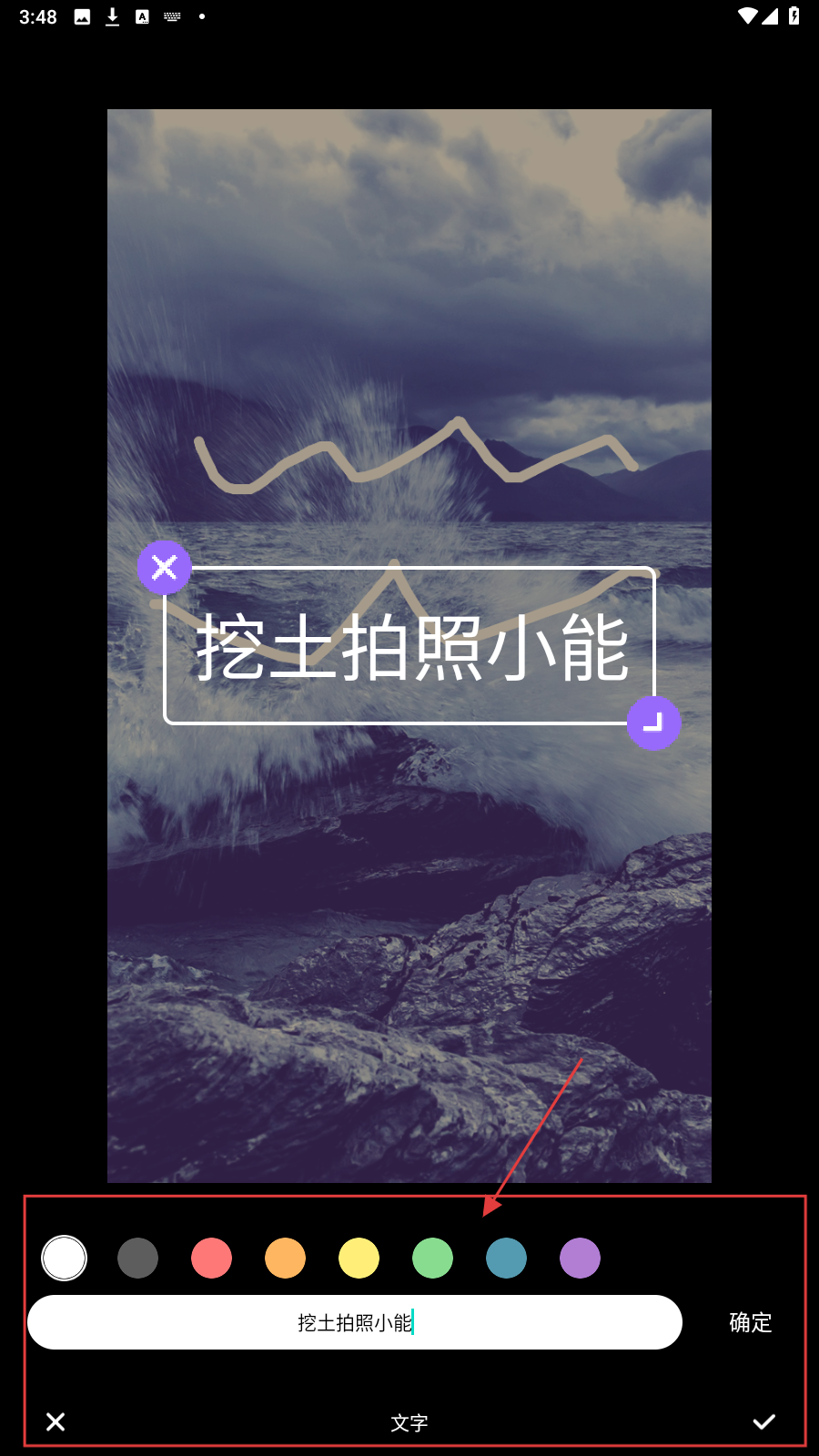 4、在【文字】添加页面,可选择文字颜色、输入文字内容,点击【确定】可添加文字到图片。