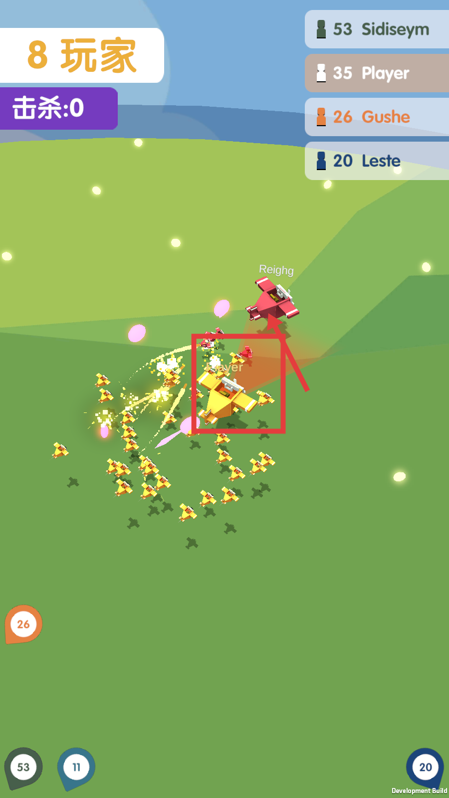 4、留意屏幕上方的玩家信息和击杀数,操控飞机击杀其他玩家,击败对手增加击杀数,争取获得更高排名。
