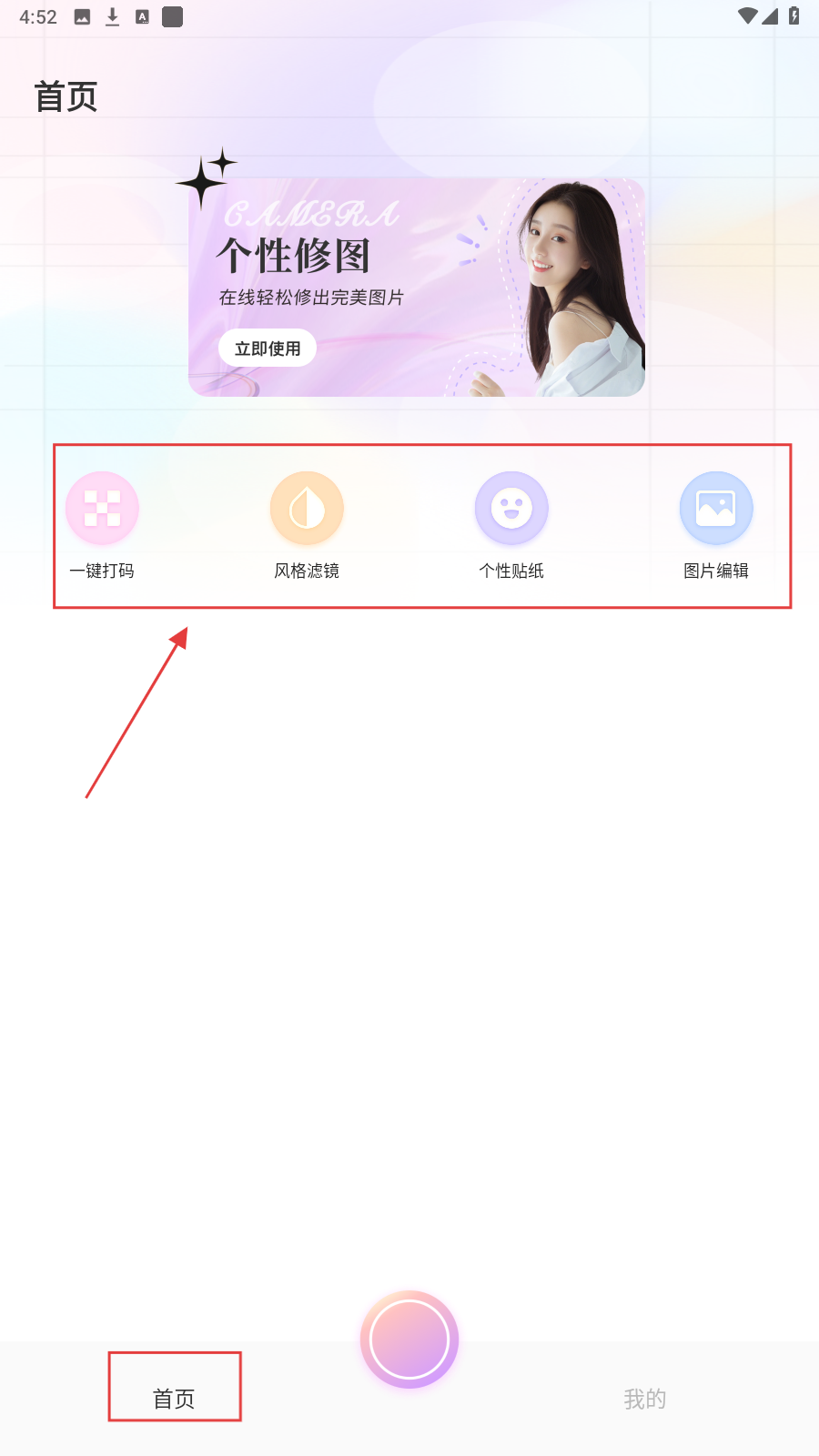 1、在首页,有【一键打码】【风格滤镜】等功能,可按需选择对图片操作。