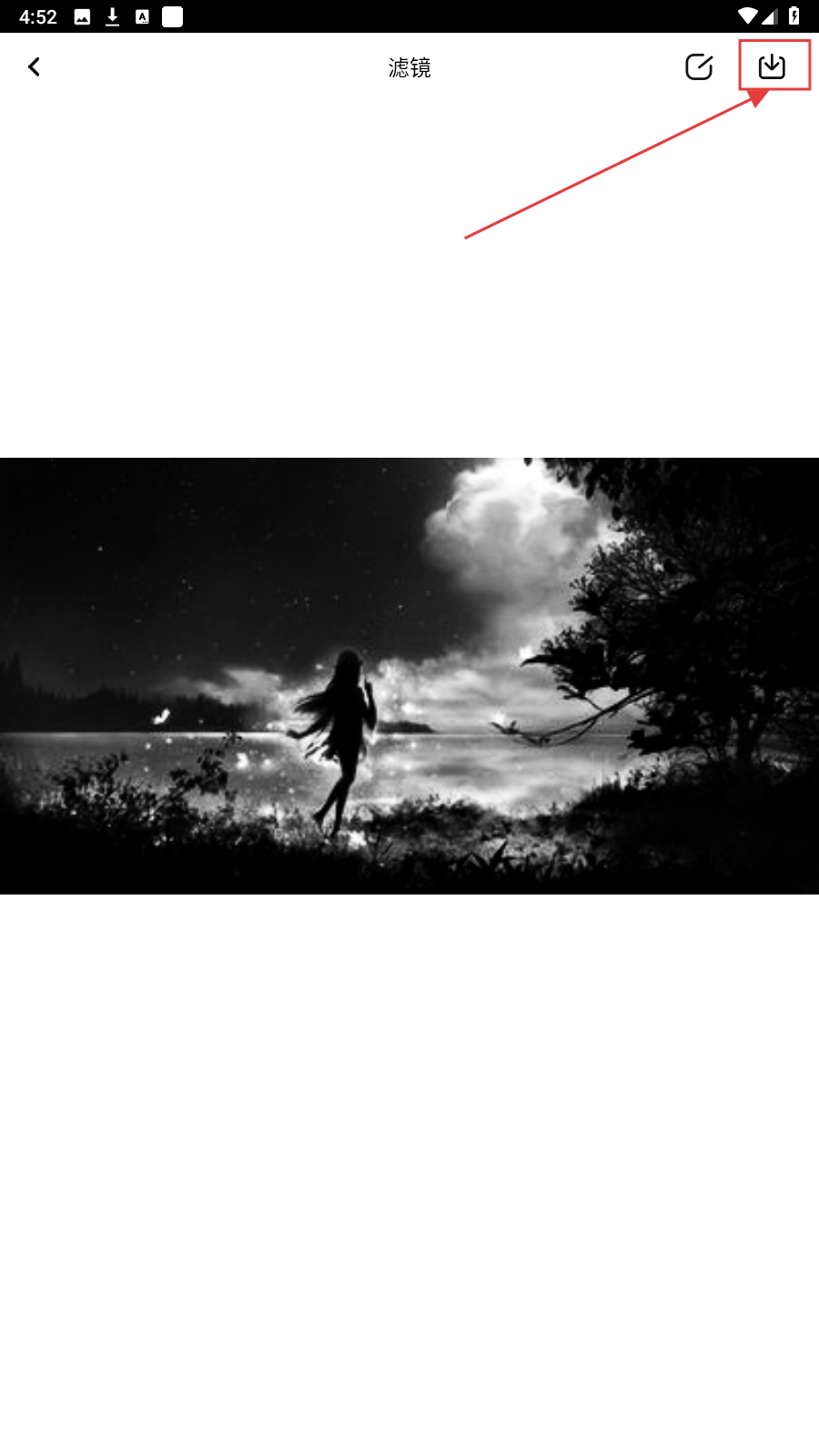 4、在滤镜应用页面,应用好滤镜后,点击右上角下载按钮,就能保存图片。