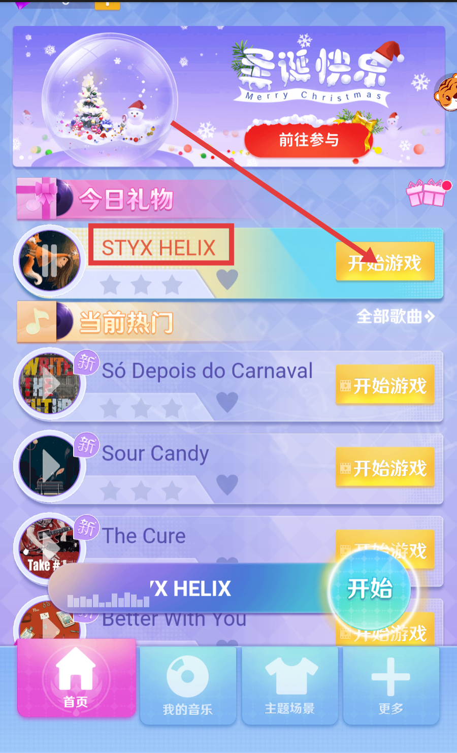 1、选择喜欢的歌曲(如【STYXHELIX】),点击其对应的【开始游戏】按钮。