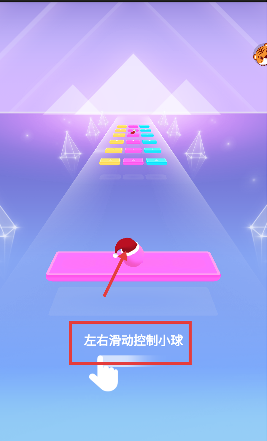 2、根据提示“左右滑动控制小球”,通过左右滑动屏幕操控小球在平台上移动。