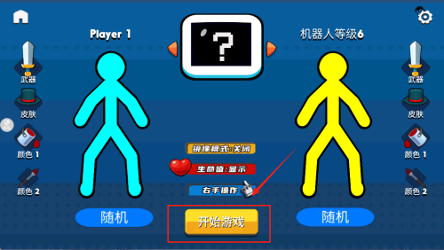3、将“Player1”设为玩家名,机器人等级调至6,确认“肤·色1·颜色2”等选项无误后,点“开始游戏”。