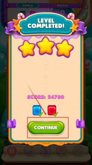 4、领取胜利:出现“LEVEL COMPLETED”与分数后,点“CONTINUE”进入下一关。