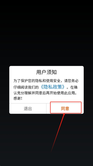 1、同意须知:在“用户须知”界面点击“同意”按钮继续游戏。