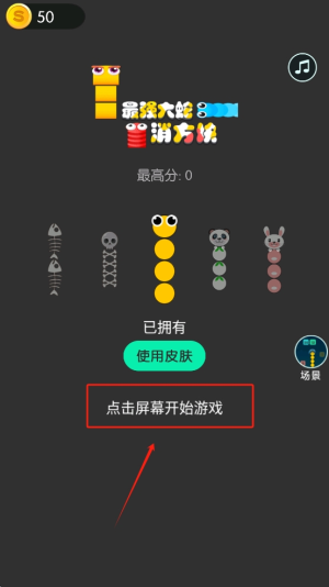 3、选择皮肤:在皮肤界面点击“使用皮肤”装备“最强大蛇”后,点击屏幕开始游戏。