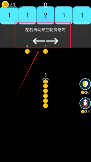 4、开始游戏:在游戏界面左右滑动屏幕控制贪吃蛇移动即可。