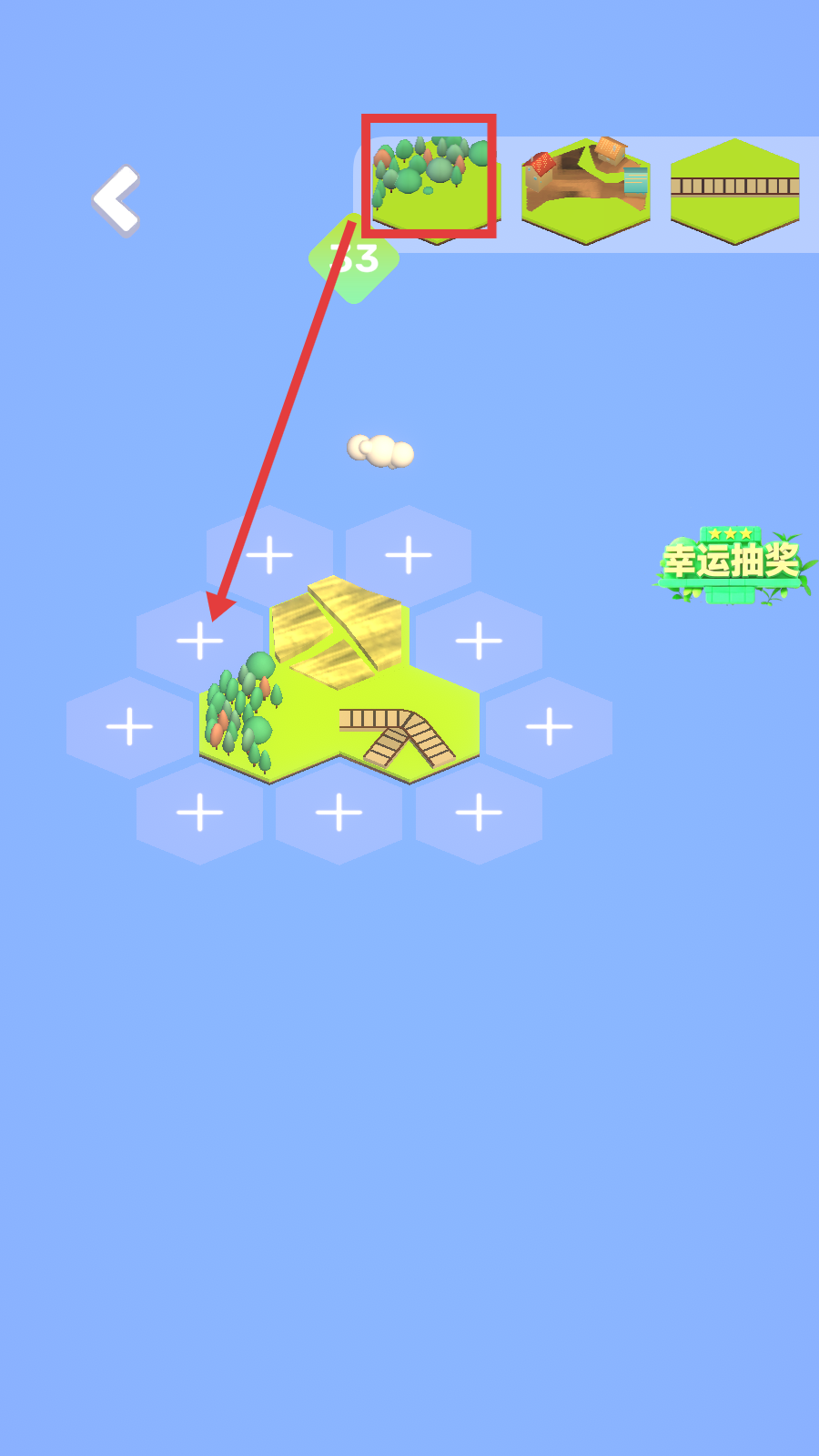1、地块布局操作:通过旋转选择合适方向,确定后直接放置地块实现拼接,连接类型一致边缘获得星数奖励。