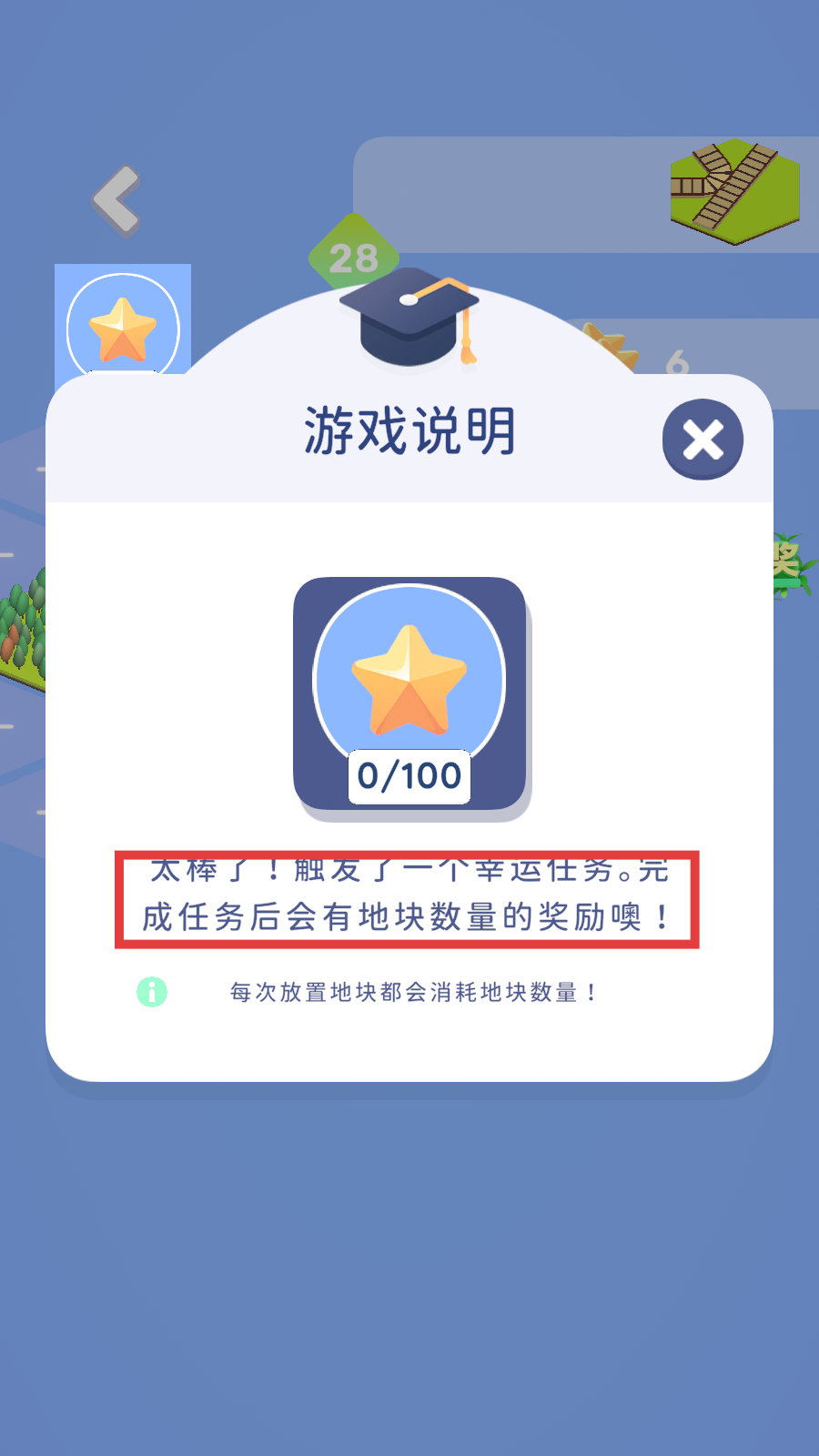 3、当相同地块相连后,会带来特殊的奖励【星星】,有时候有概率会触发特殊的幸运任务。