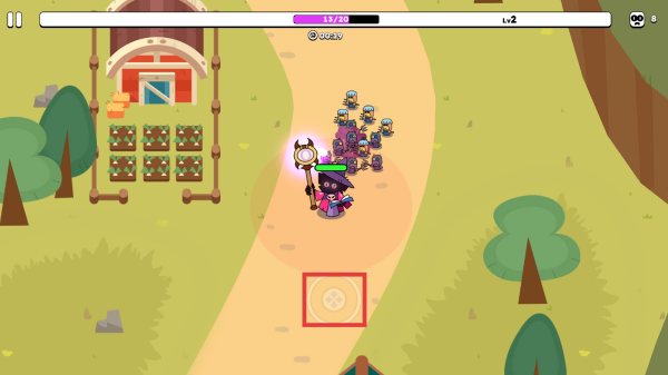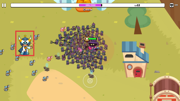1、屏幕下方的虚拟方向键,控制角色方向移动,带领整个队伍进行进攻带叉子的小人。