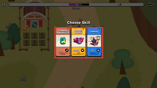 3、升级后,可以有3个选择,提升召唤物的攻击力、百分之五十的防御力、角色的移动速度。