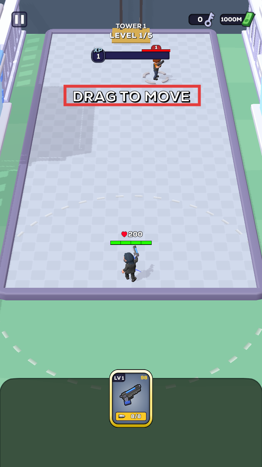 1、按照提示,我们通过滑动屏幕控制角色移动,熟悉这样的基本操作。