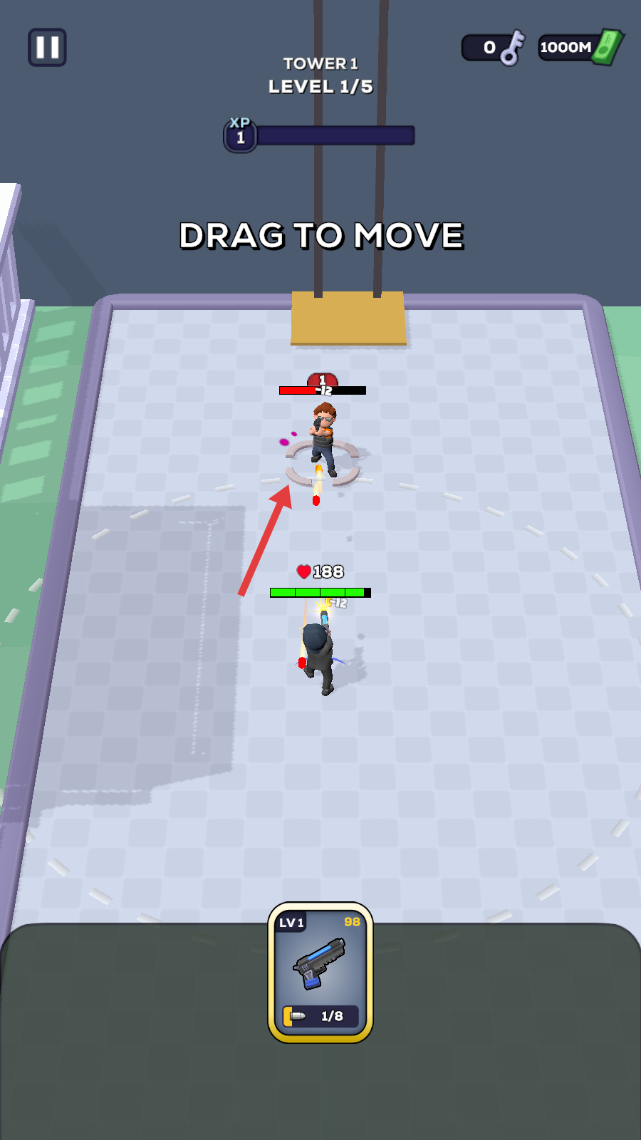 2、便捷操作机制:滑动移动配合自动锁定攻击简化操作流程,走位躲避子弹设计提供灵活应变空间降低入门门槛。