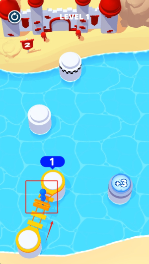2、使用关卡提供的物件搭建连接两岸的桥梁,确保桥梁稳固能承载小人通行,搭建完成后指挥小人尝试跨越海峡。