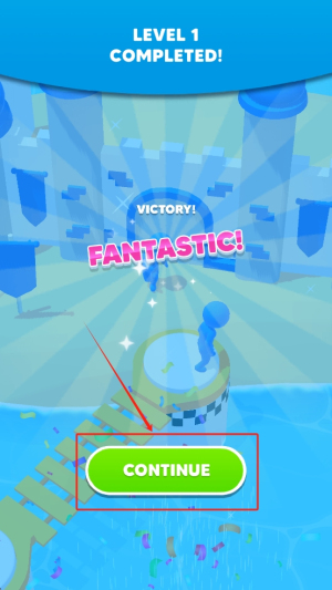 4、领取胜利:出现“LEVEL1 COMPLETED”等字样后,点击“CONTINUE”进入下一关。