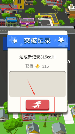 4、领取奖励:出现“突破纪录 315cal”弹窗后,点击“获得”领取奖励并继续挑战。