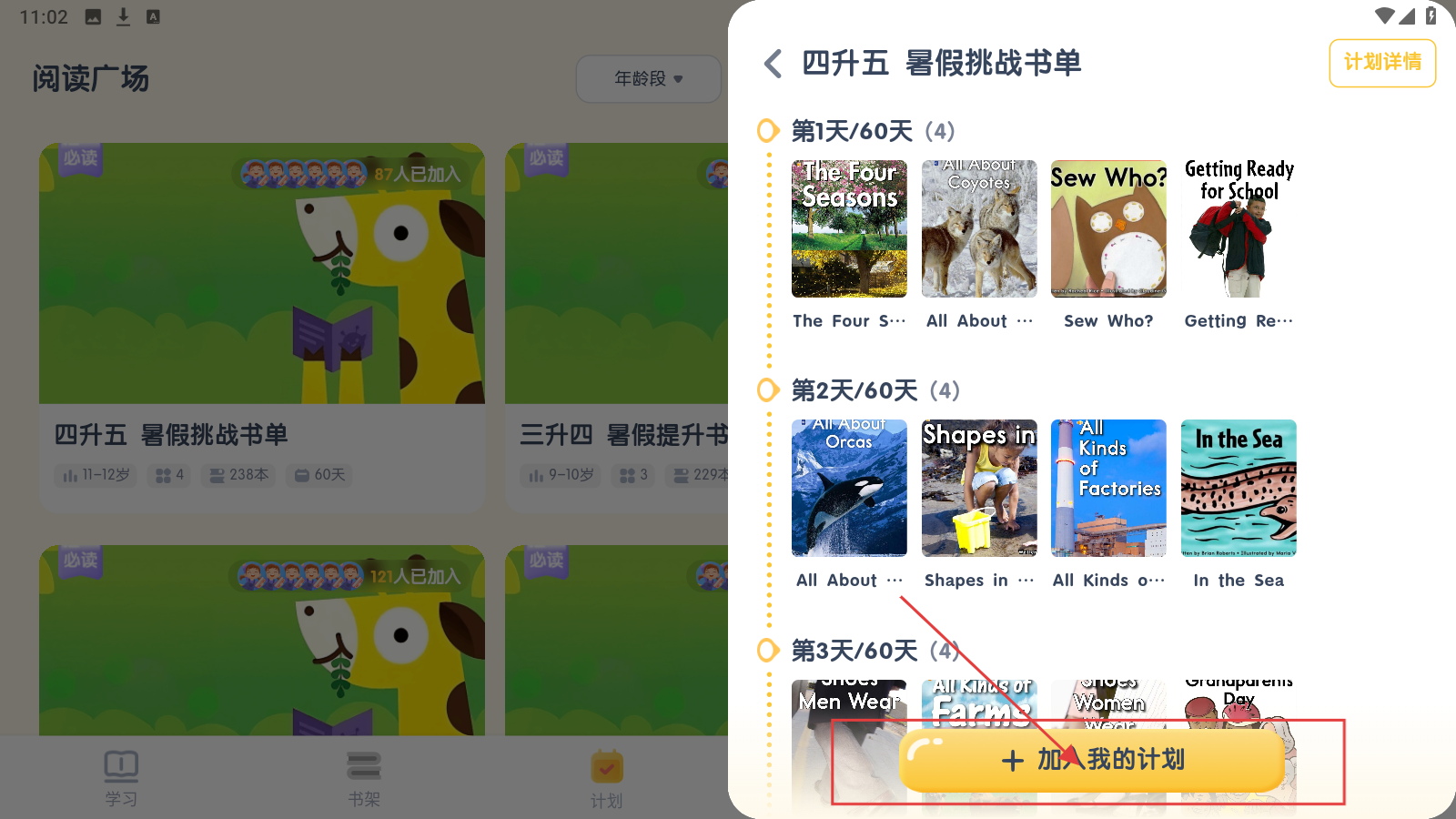 4、选择喜欢的书单后,点击【+加入我的计划】,即可将书单加入自己的阅读计划,开启阅读之旅。