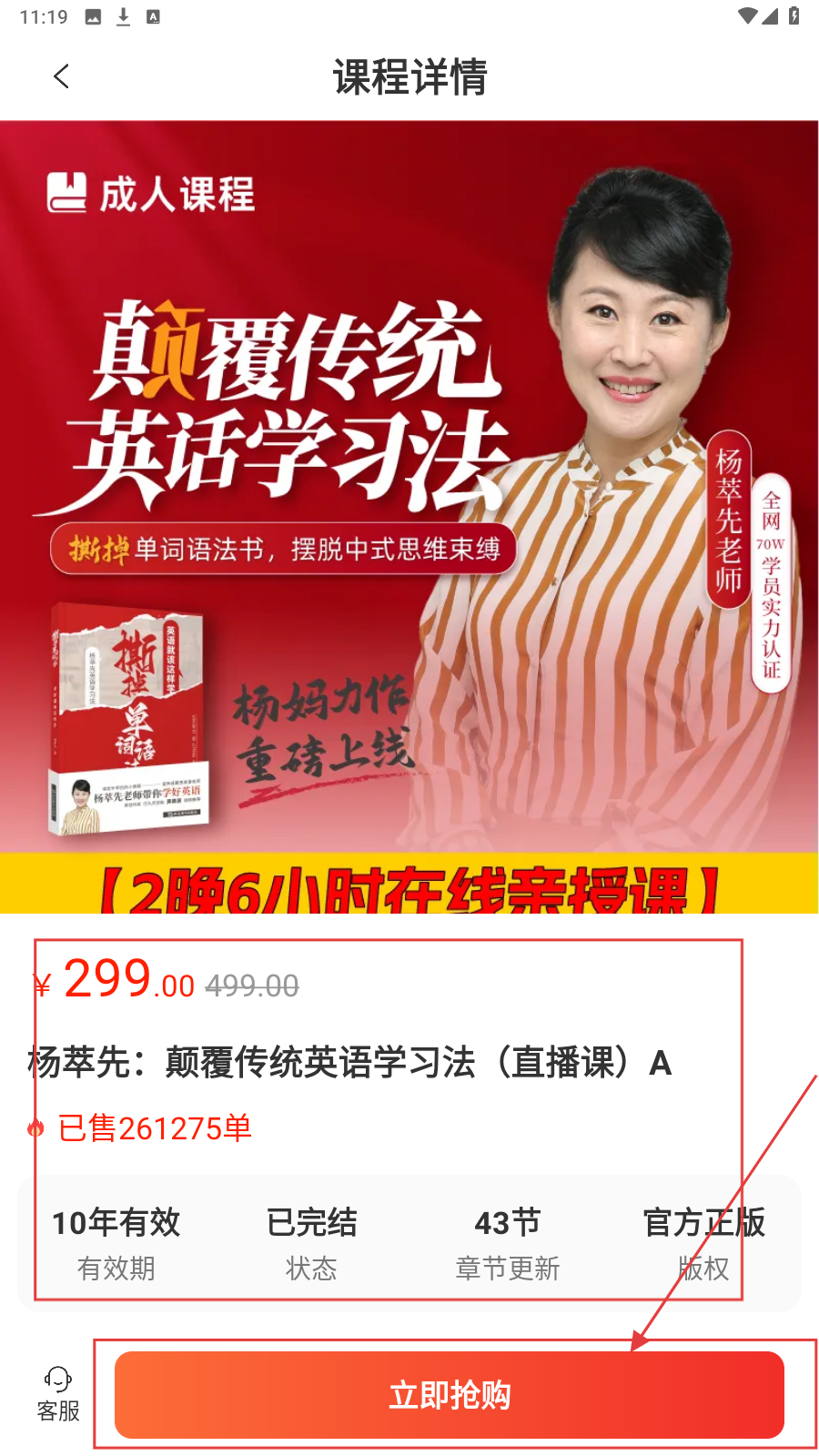 3、在课程详情页面,可查看课程价格、有效期等信息,点击【立即抢购】,即可购买课程。