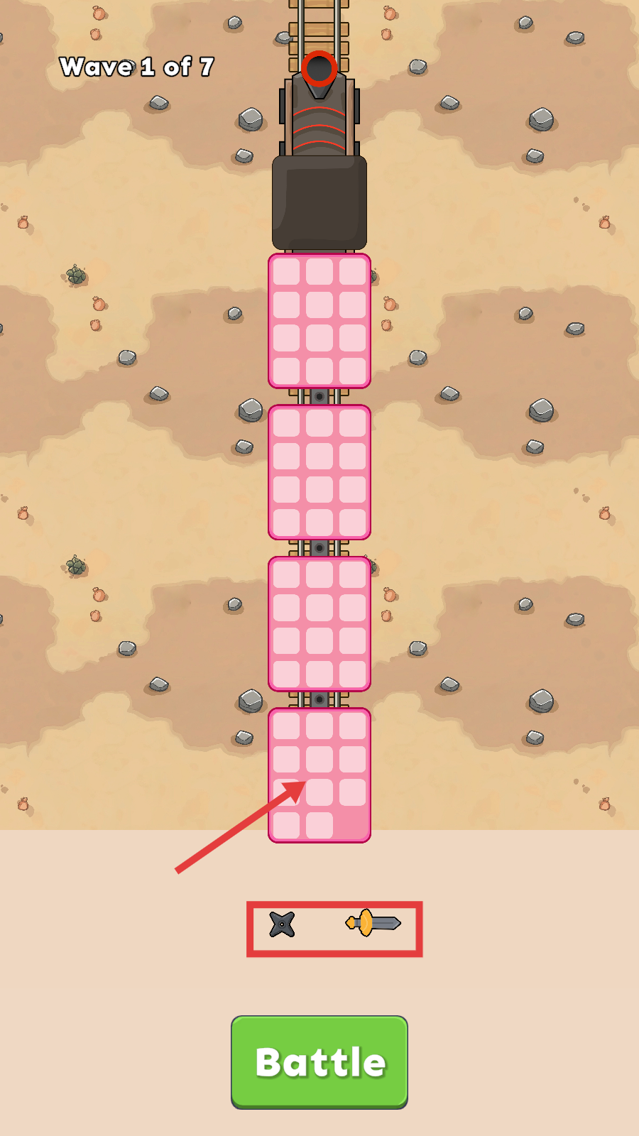 3、进入准备阶段,合理安排武器在车厢格子中,利用不同武器特性应对敌人。