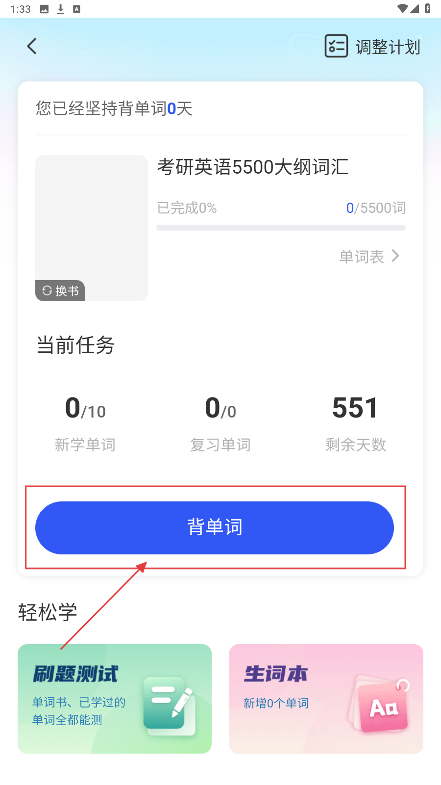 2、设置完成后,点击【背单词】开始任务。