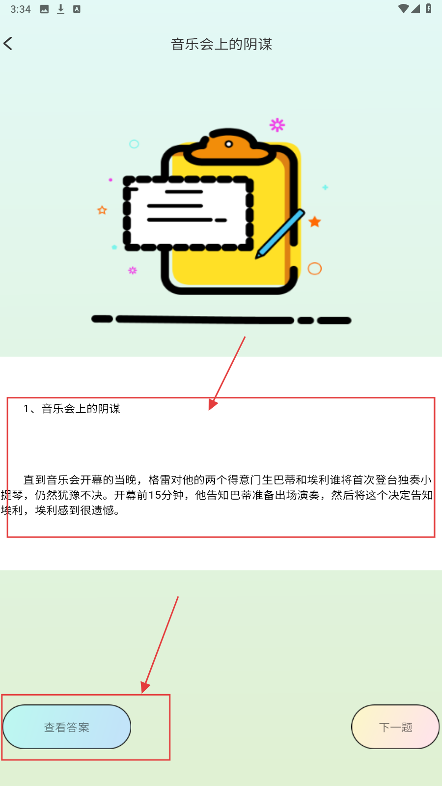 3、阅读题目内容,理解情节后,点击【查看答案】按钮,查看题目解析。
