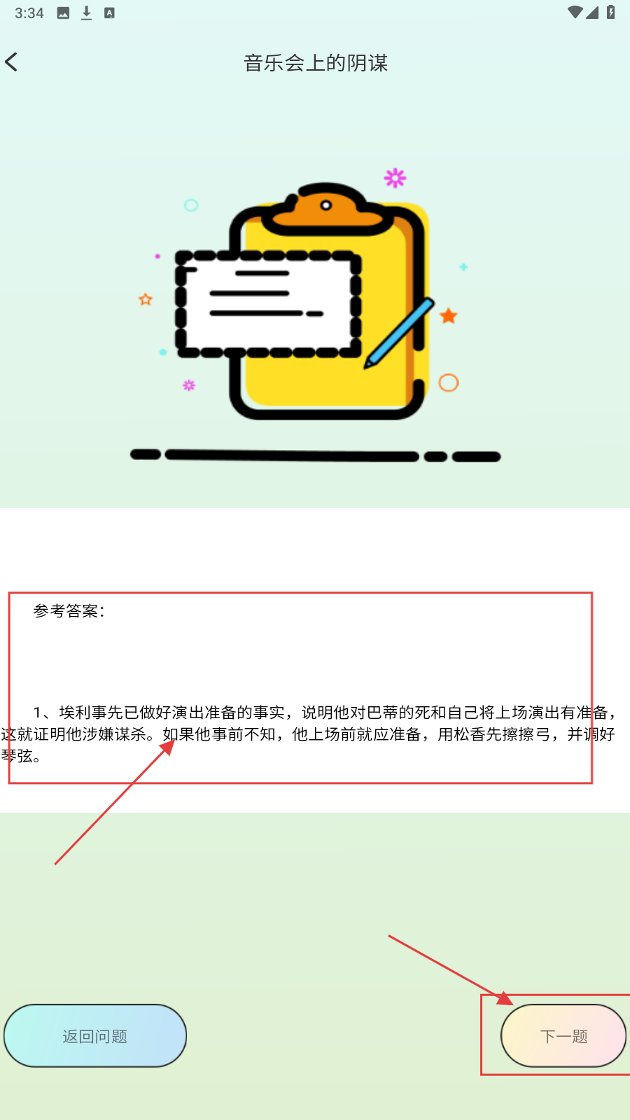 4、查看答案后,点击【下一题】按钮,继续挑战下一个侦探推理题目。