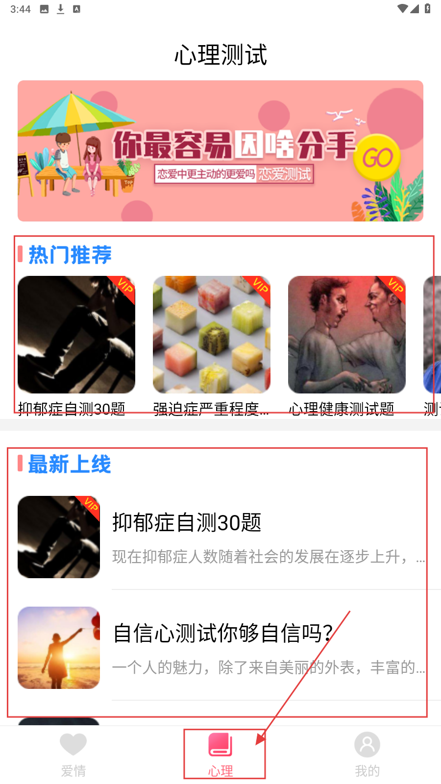 1、进入心理测试界面后,选择感兴趣的测试题目,如【自信心测试你够自信吗?】。