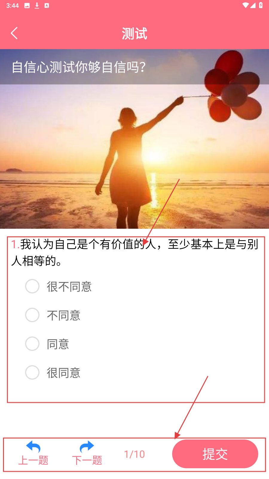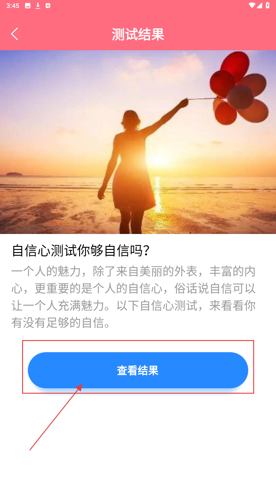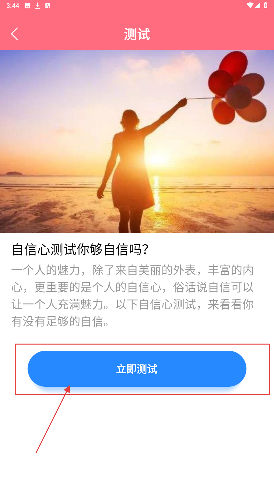 2、点击【立即测试】按钮,开始进行自信心测试。