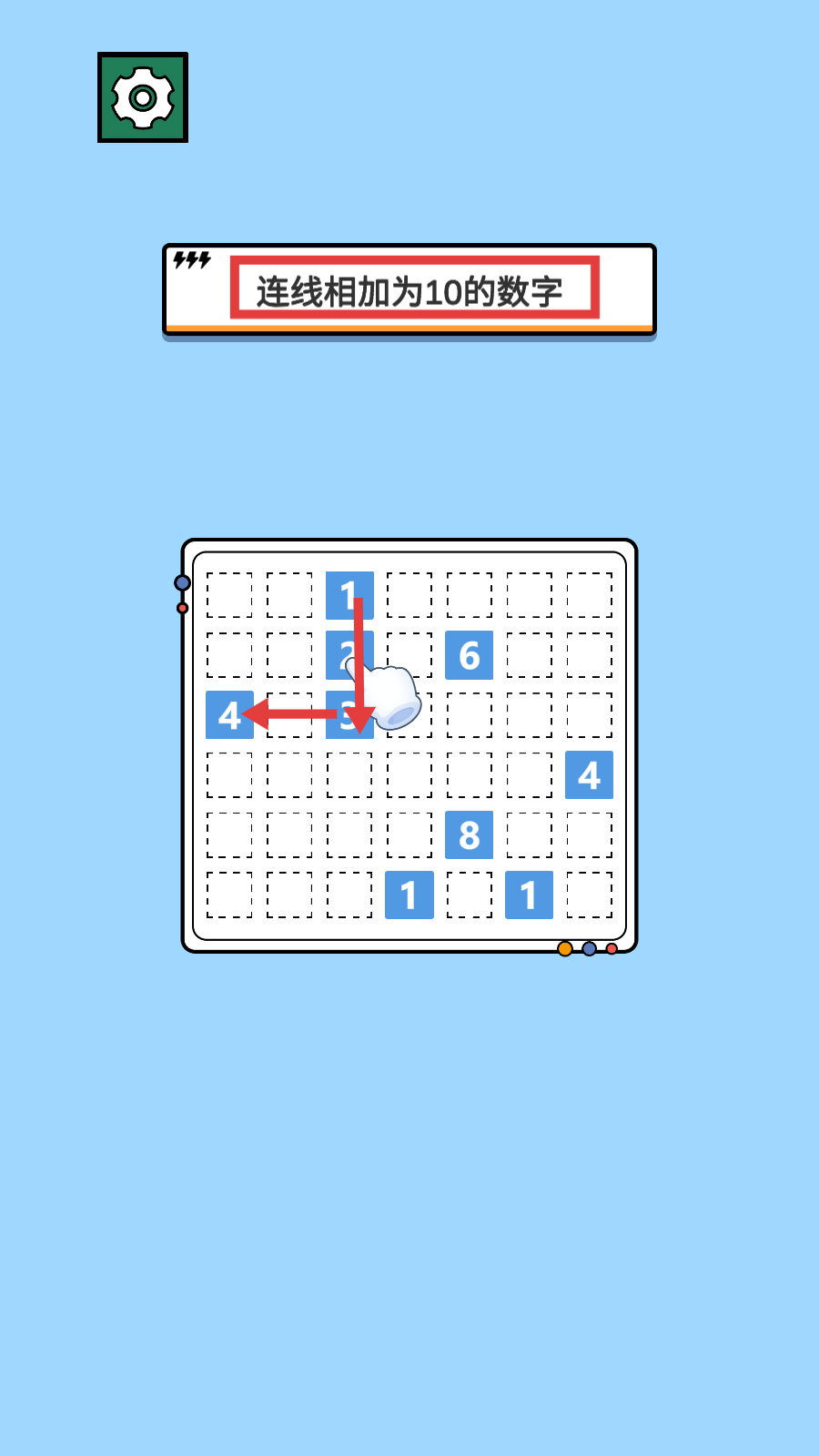1、按照提示寻找能连线相加为【10】的数字组合,优先连接易发现的组合。