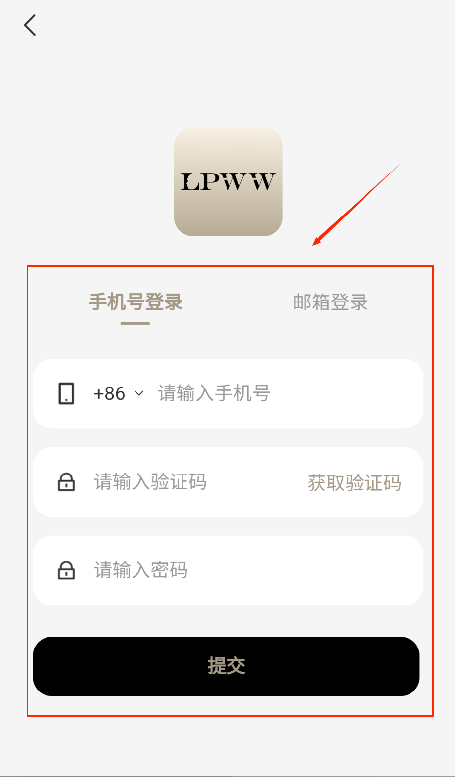 1、打开APP进入登录界面,选择手机号登录方式,输入+86开头的手机号码,点击获取验证码按钮呀。
