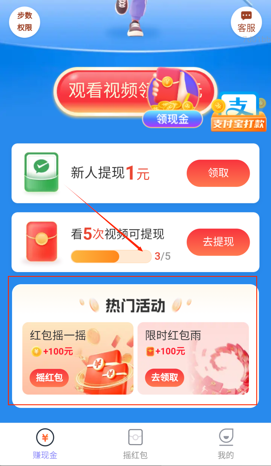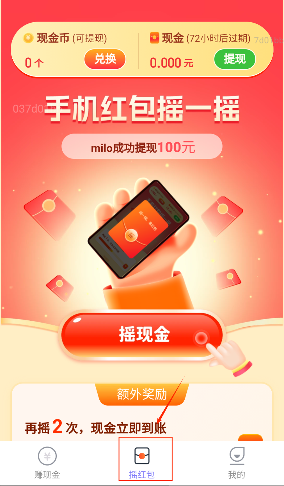 3、红包页每日签到领取,观看短视频获取,摇一摇手机抽取,累积更多收益呀。
