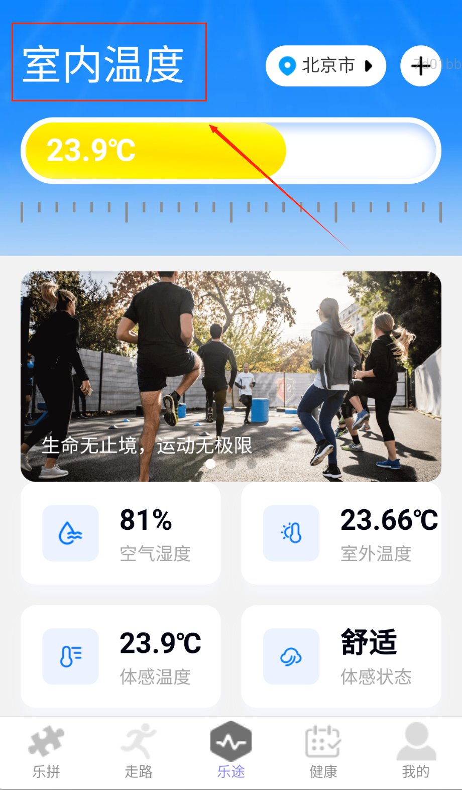 2、温度页查看室内外数据,关注体感温度变化,设置高温预警,调整运动计划啦。