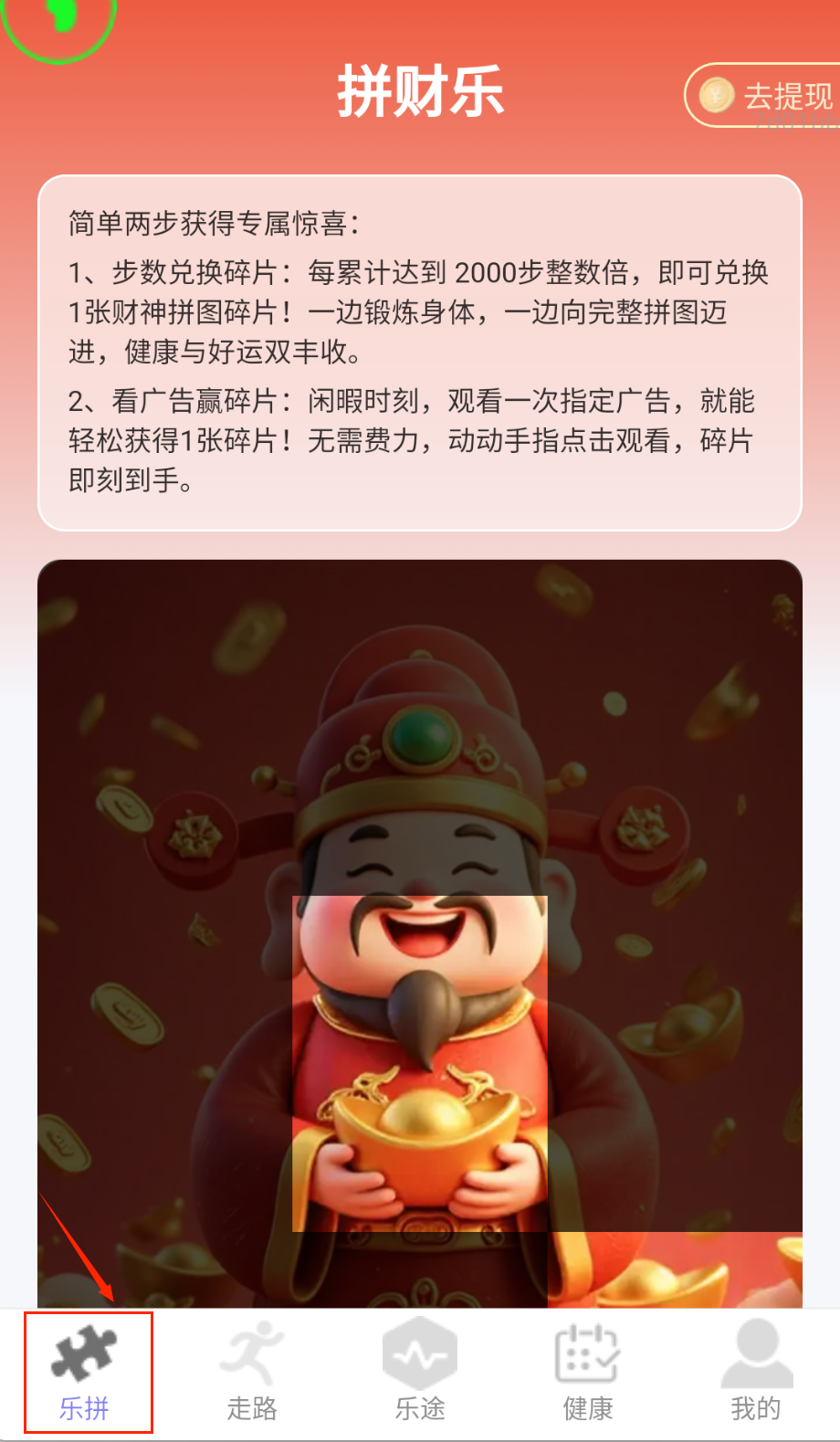 1、首页开启运动模式,选择步行/跑步等类型,实时查看步数和消耗卡路里,达成目标获取金币哦。