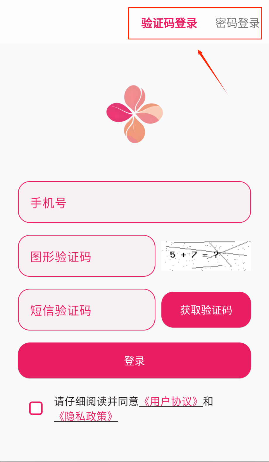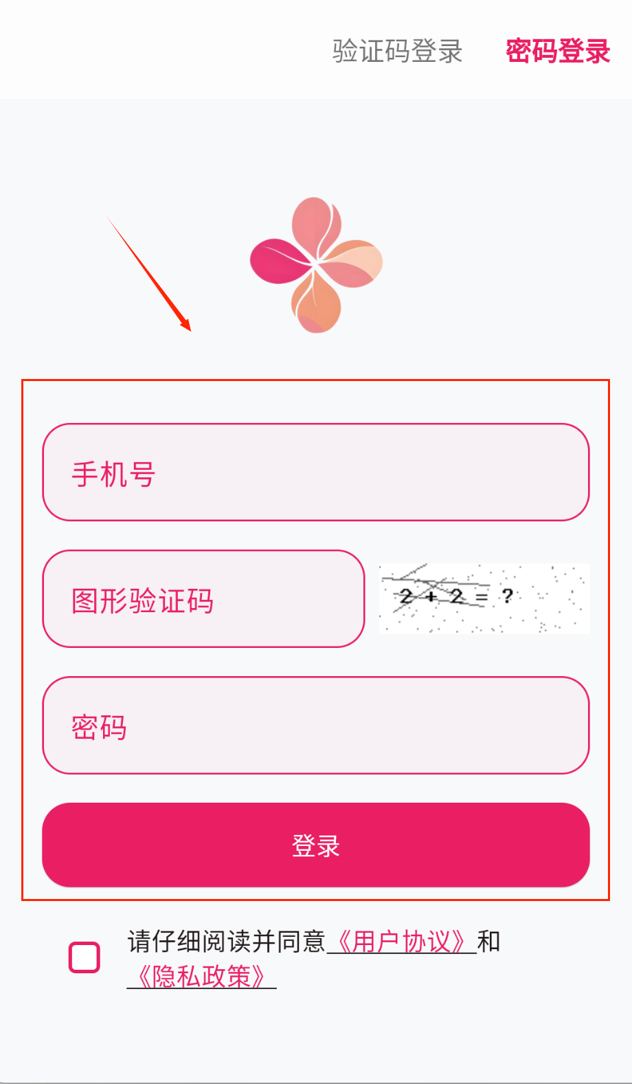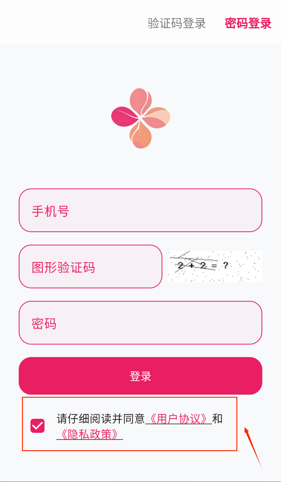 4、记得勾选底部协议条款,这是必须的操作步骤,最后点击粉色登录按钮完成登录哦。
