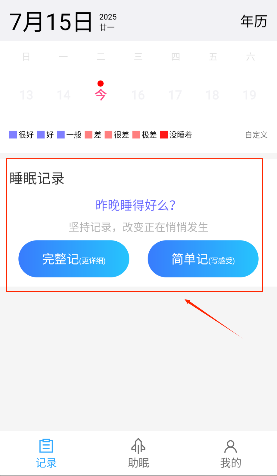 2、晨起查看睡眠报告,了解深睡时长和翻身次数,记录睡前活动和情绪状态,完善睡眠日记啦。