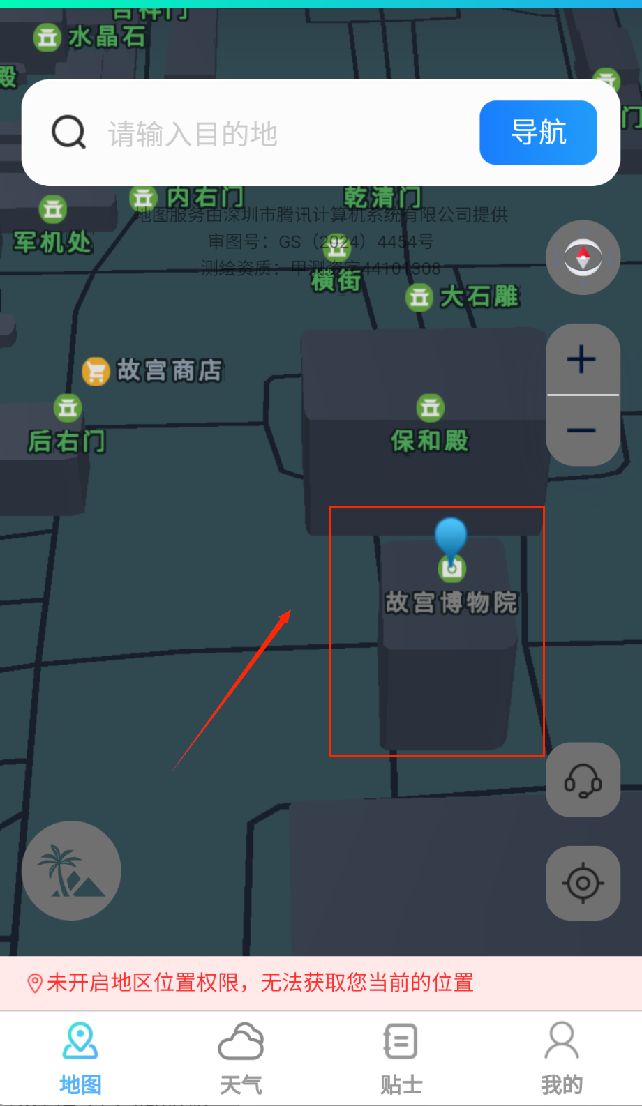 2、地图页双指缩放调整视角,点击建筑查看详情,收藏特色地点,分享当前位置给好友啦。