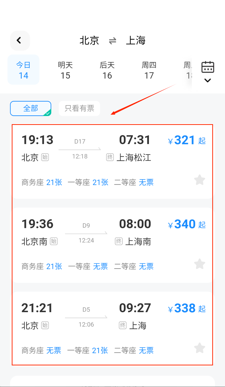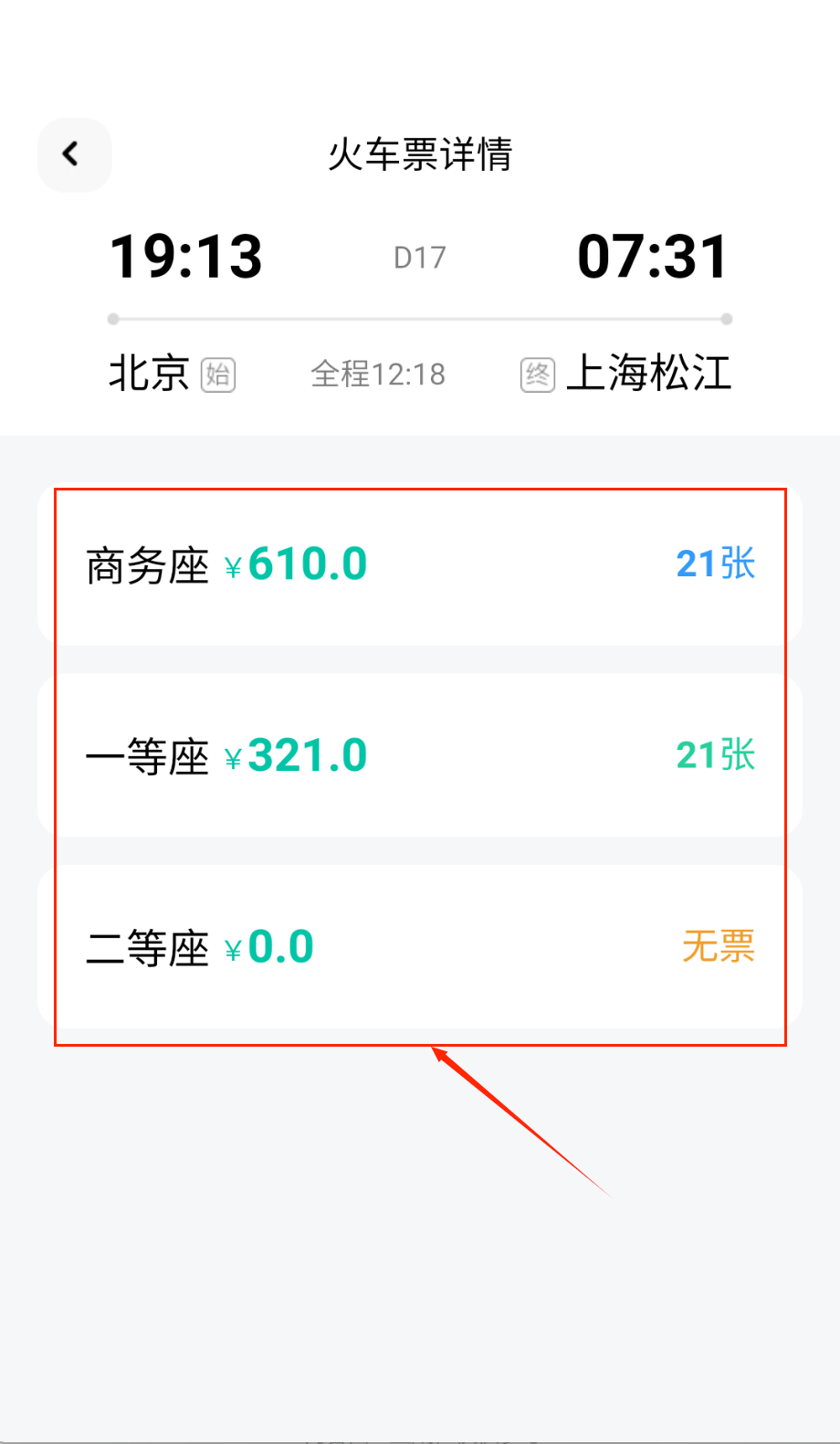 2、车次详情页查看经停站点,收藏常用车次,设置购票提醒,对比不同席别价格啦。