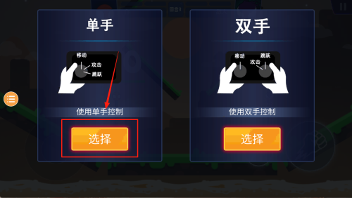3、进入控制方式界面后,轻触“单手”或“双手”按钮选择操作模式并点击“选择”确认。