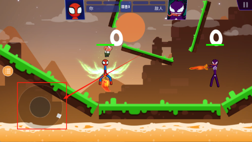 1、选择心仪的火柴人角色,进入对应难度的关卡,通过虚拟按键操控角色移动、出拳、踢腿,基础操作组合成连续攻击。