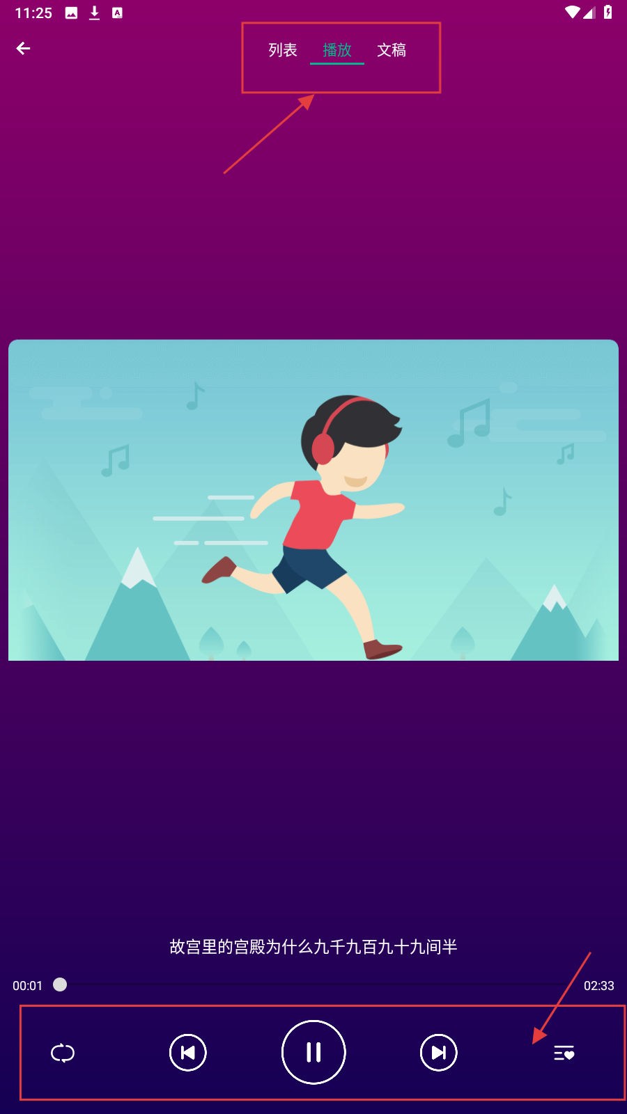 4、在播放页面中,点击【播放】按钮,开始播放解说内容,了解景点背后的故事。