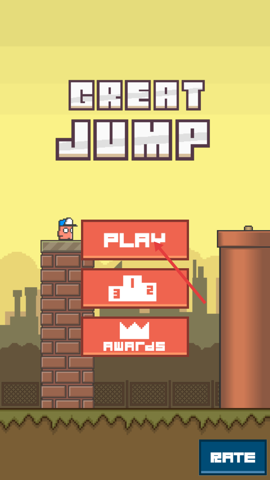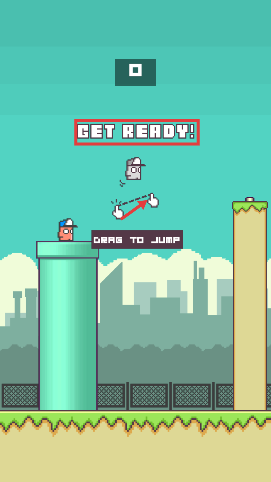2、滑动屏幕用来控制小人进行跳跃,控制力度大小,精准跳跃到下一个地块。