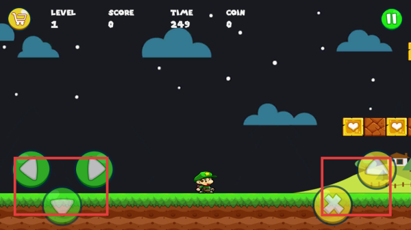 1、开局熟悉左下方和右下方的方向键,利用它们灵活操控角色在关卡中行进。