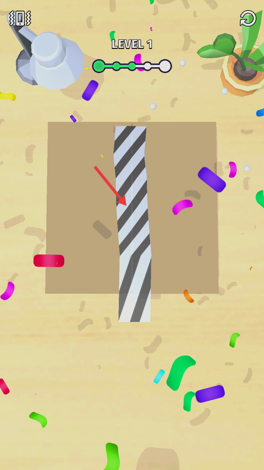 3、为了完成玩具装盒,通过手指上下滑动屏幕,盒子就会被胶布封住,到达下一阶段。