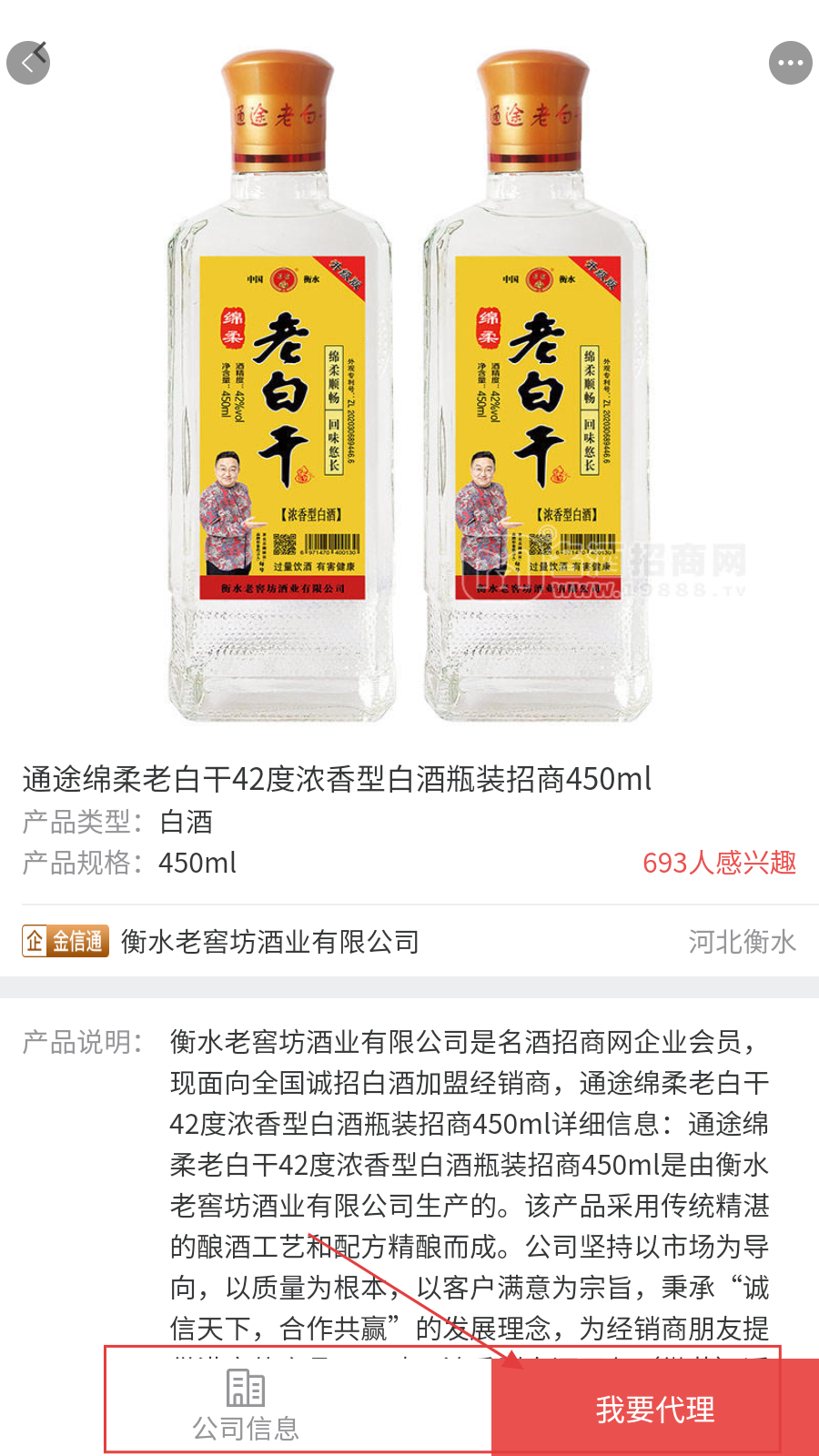 2、在商品列表页面中,选择感兴趣的商品,如【通途绵柔老白干42度浓香型白酒瓶装招商450ml】,查看商品详情。