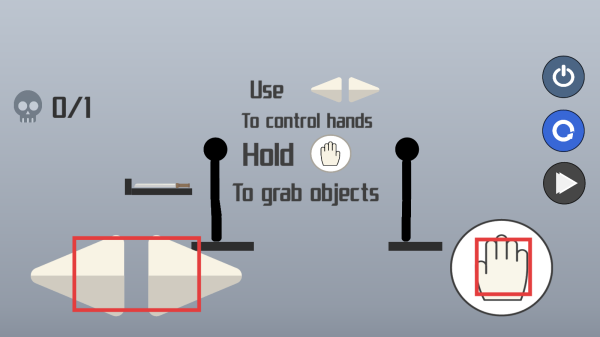 1、根据屏幕提示,利用左右箭头按键控制火柴人手臂移动,点击右下方按键可以握住【刀】。