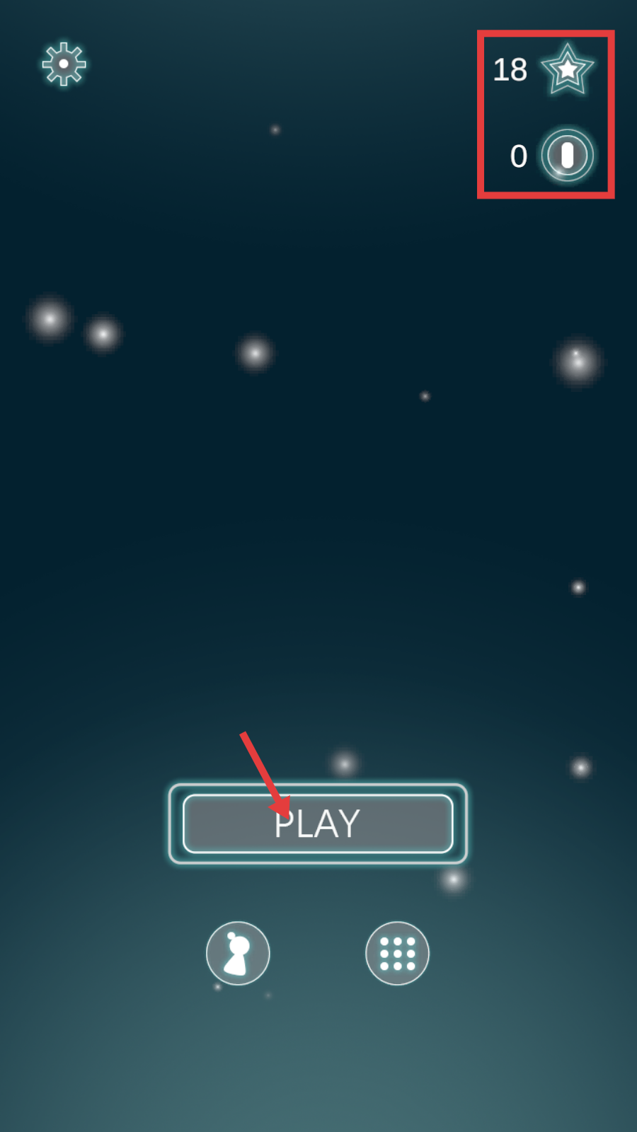 2、点击【PLAY】进入游戏,注意右上角星星和其他资源数量,它们可能用于解锁道具或角色。