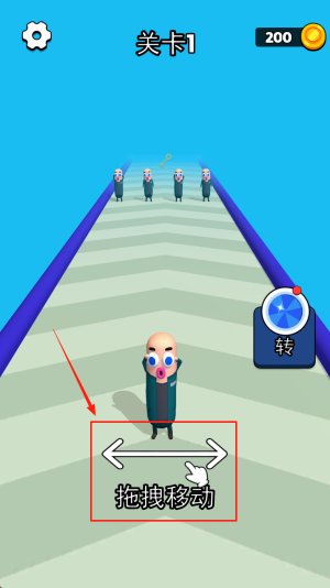 2、当屏幕出现“200”与“转 拖拽移动”提示时,按住角色并拖拽到安全位置,避开敌人首轮攻击。