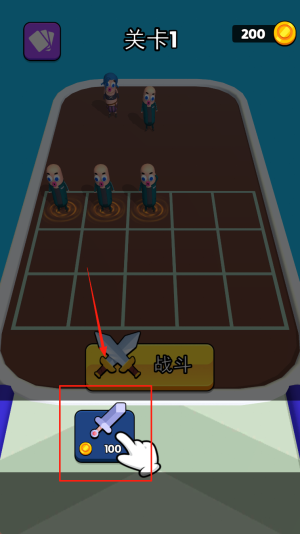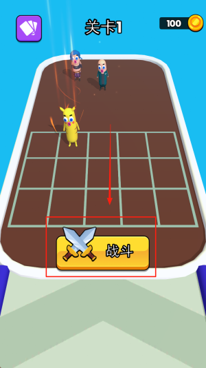 1、在关卡1界面看到“100”和“战斗”按钮,直接点击“战斗”进入第一场对决。
