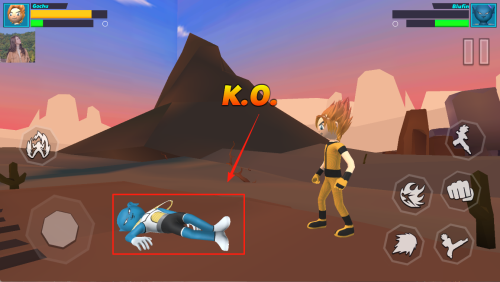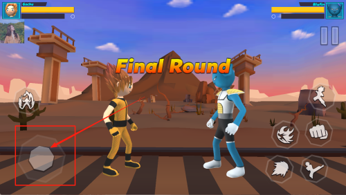 1、操控火柴人在竞技场移动,通过虚拟按键释放拳、脚攻击,找准敌人破绽发起连击,同时注意格挡或闪避对方的反击。