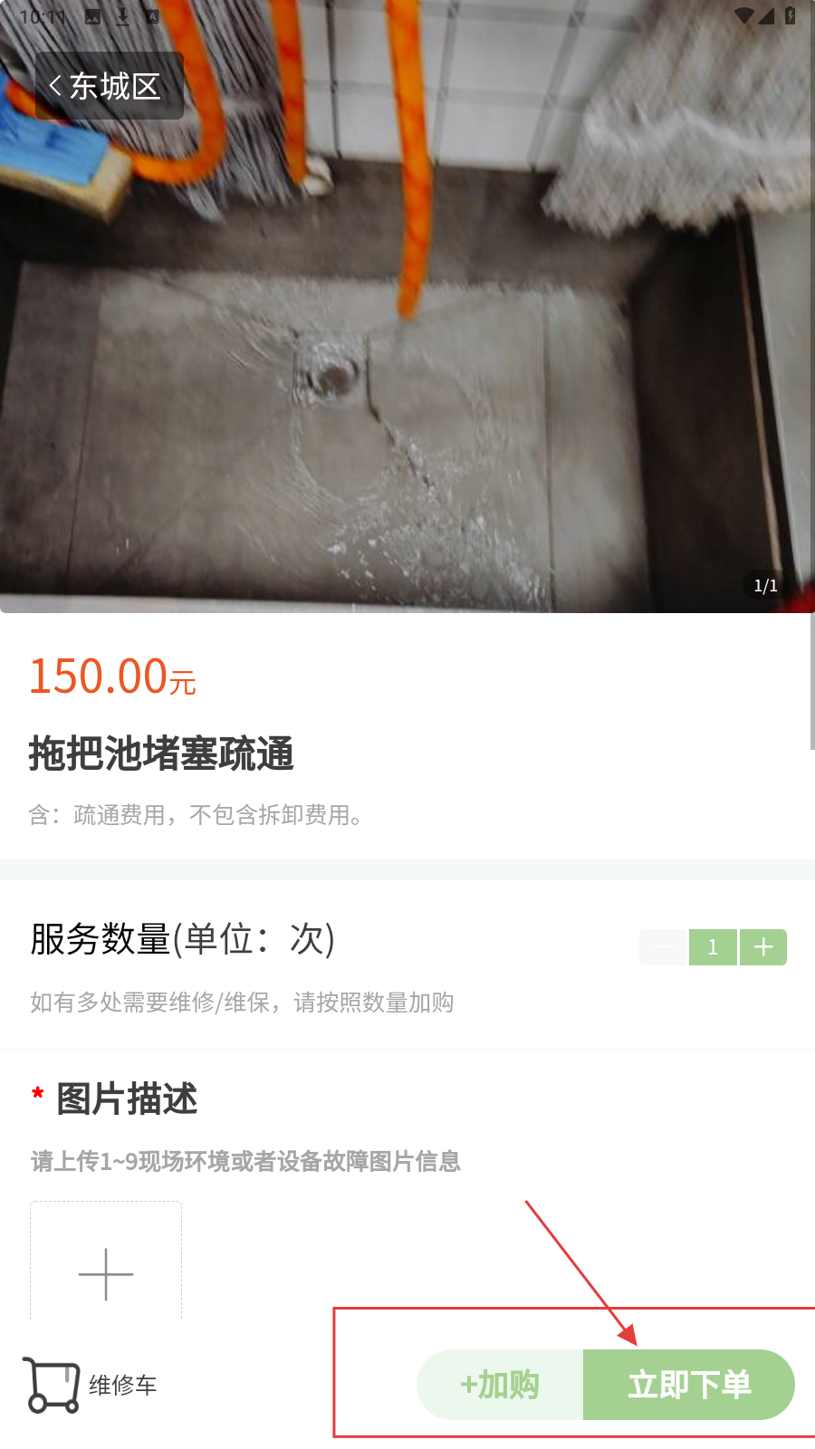 4、进入维修下单页面,点击右下角【立即下单】即可。
